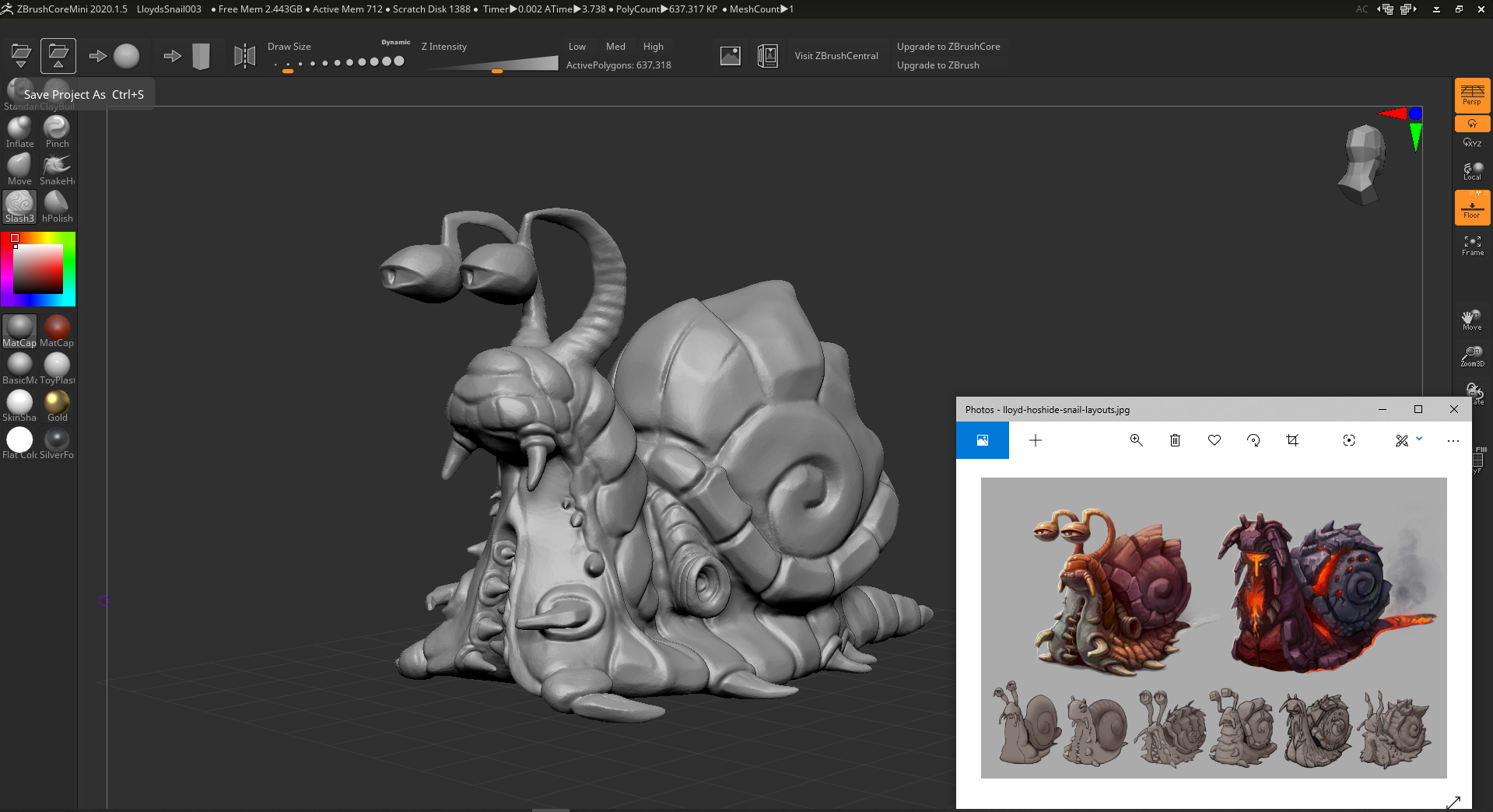 June 12, 2020June 12, 2020 Snail Screenshot ZBrush Sculpt that I spent the better part of a day to work on and complete. 637,000 polys.